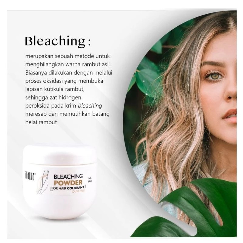Naura Bleaching Powder adalah produk perawatan rambut yang dirancang khusus untuk proses bleaching, yaitu menghilangkan warna alami rambut. Produk ini menggunakan formulasi yang efektif untuk membuka lapisan kutikula rambut, memungkinkan zat aktif seperti hidrogen peroksida untuk bekerja maksimal dalam memutihkan batang helai rambut.